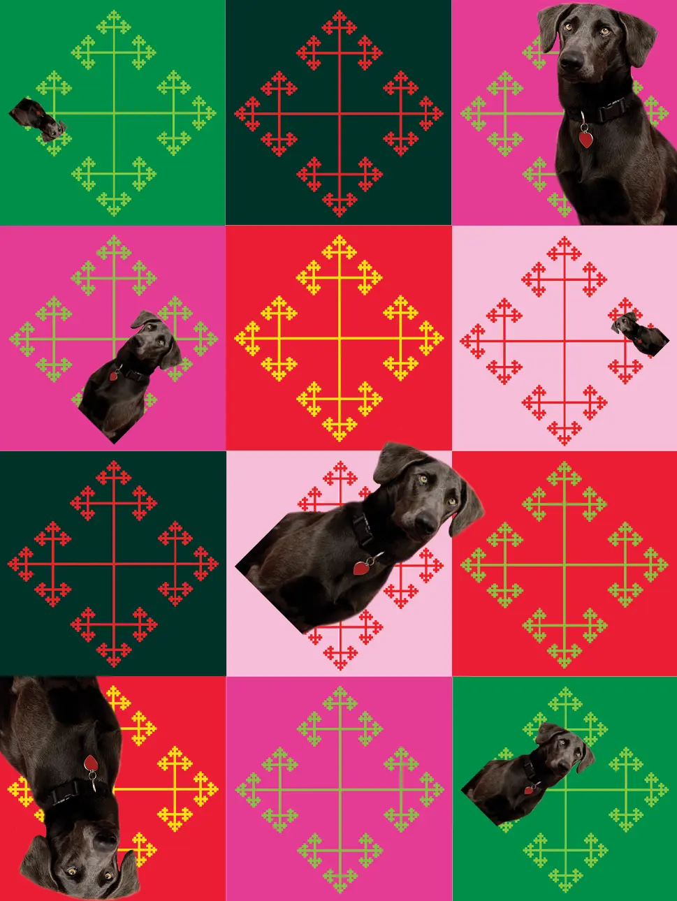 Pieced into a digital quilt featuring the universal cover for the wedge of two circles, reimagined from Allen Hatcher’s drawing in his book Algebraic Topology.